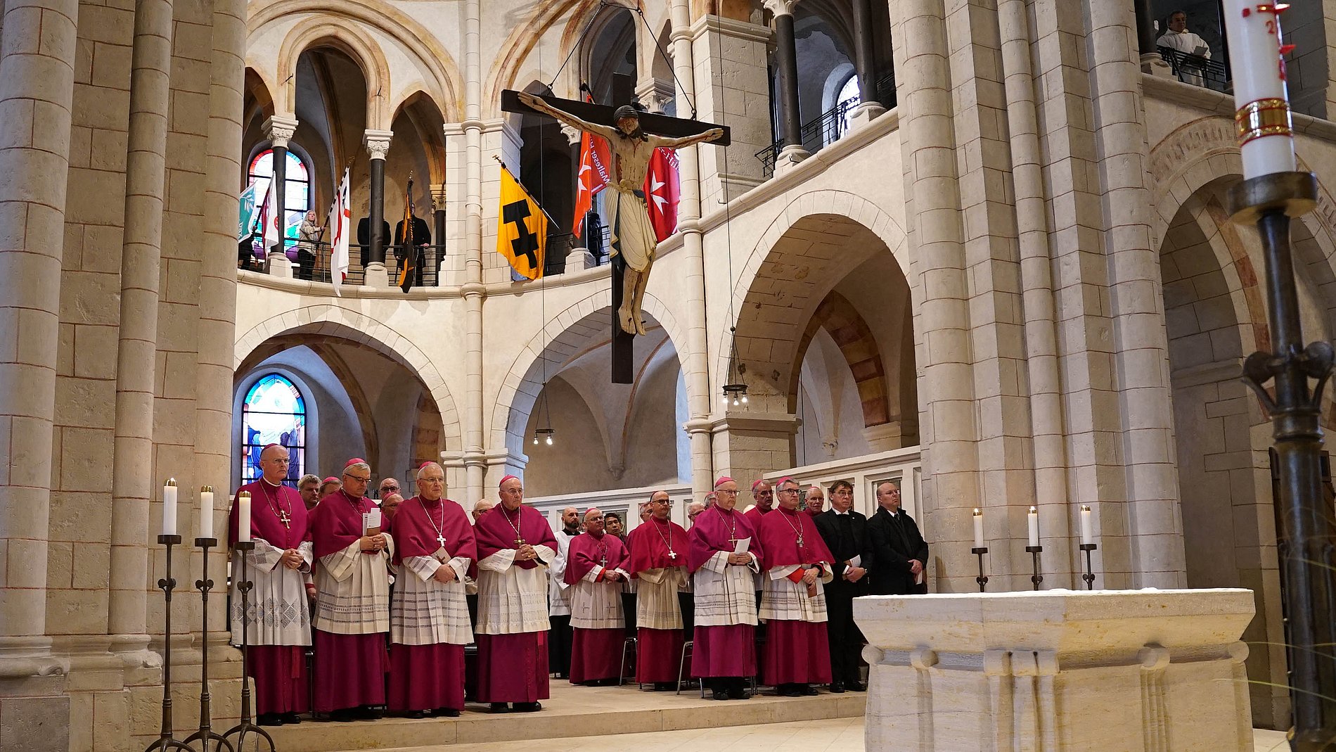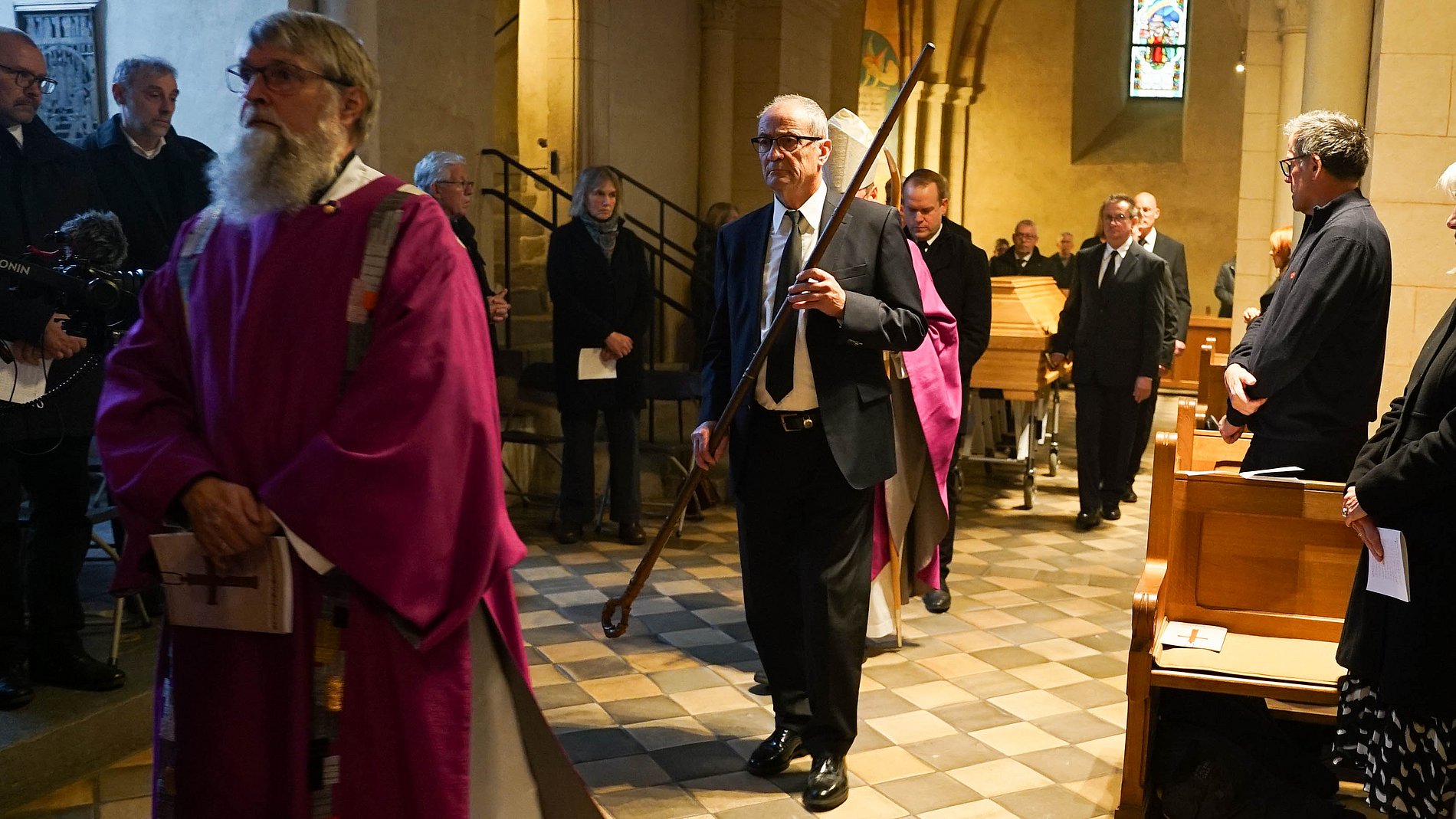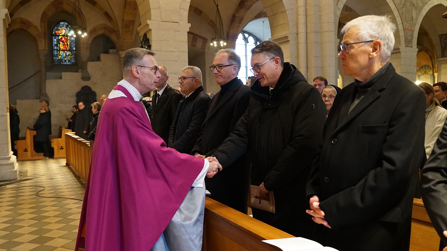 Bischof em. Dr. Franz Kamphaus ist am Dienstag, 5. November 2024, im Hohen Dom zu Limburg beigesetzt worden. Der charismatische Altbischof, der am 28. Oktober im Alter von 92 Jahren verstorben war, fand seine letzte Ruhe in der Gruft im Südquerhaus der Bischofskirche. Zu den Trauerfeierlichkeiten kamen mehrere hundert Menschen, darunter zahlreiche Bischöfe, Weggefährten, Verwandte, Vertreterinnen und Vertreter aus Politik und Gesellschaft sowie viele Gläubige aus dem gesamten Bistum. Das Pontifikalrequiem für den Verstorbenen, das von tiefer Dankbarkeit für das Wirken von Kamphaus geprägt war, feierte Bischof Dr. Georg Bätzing.