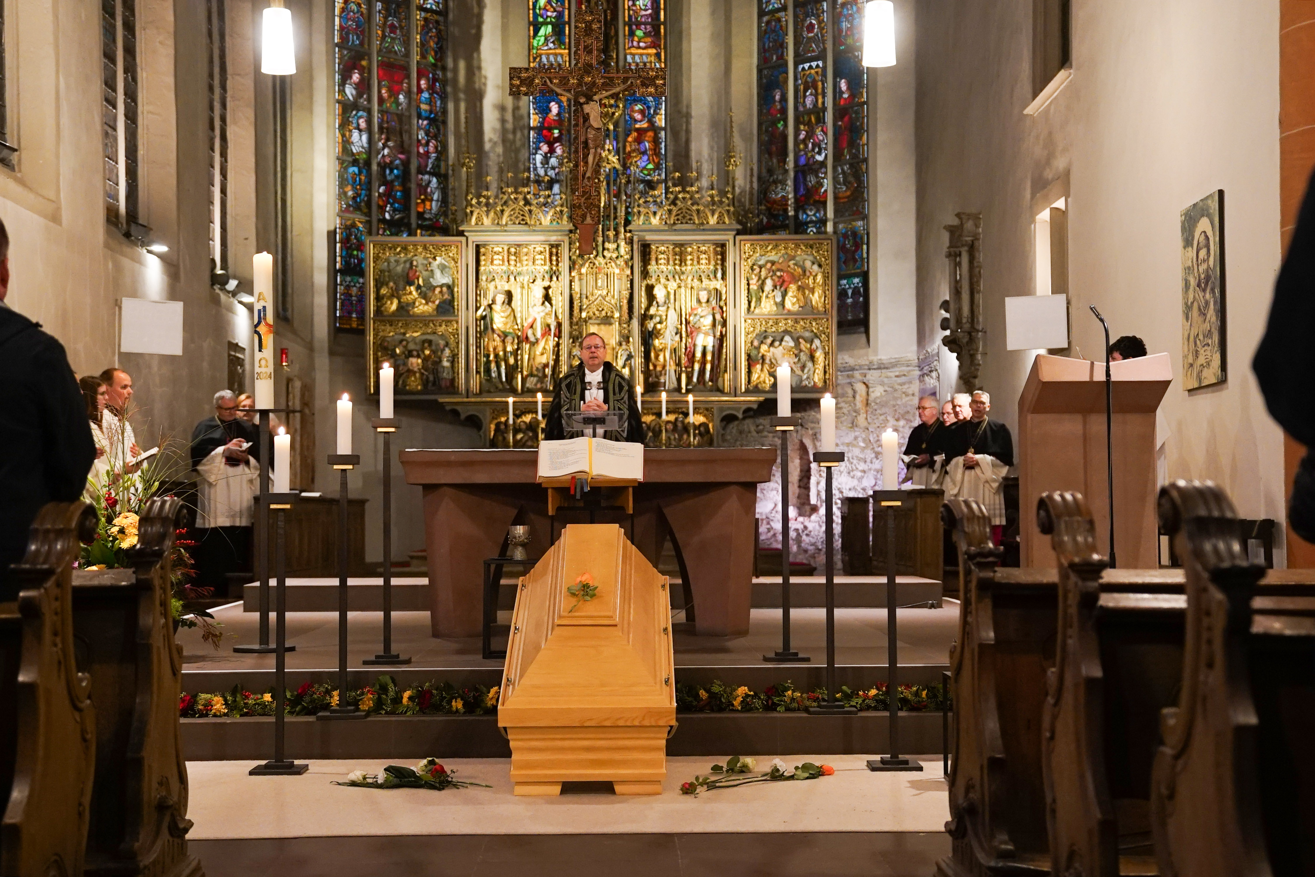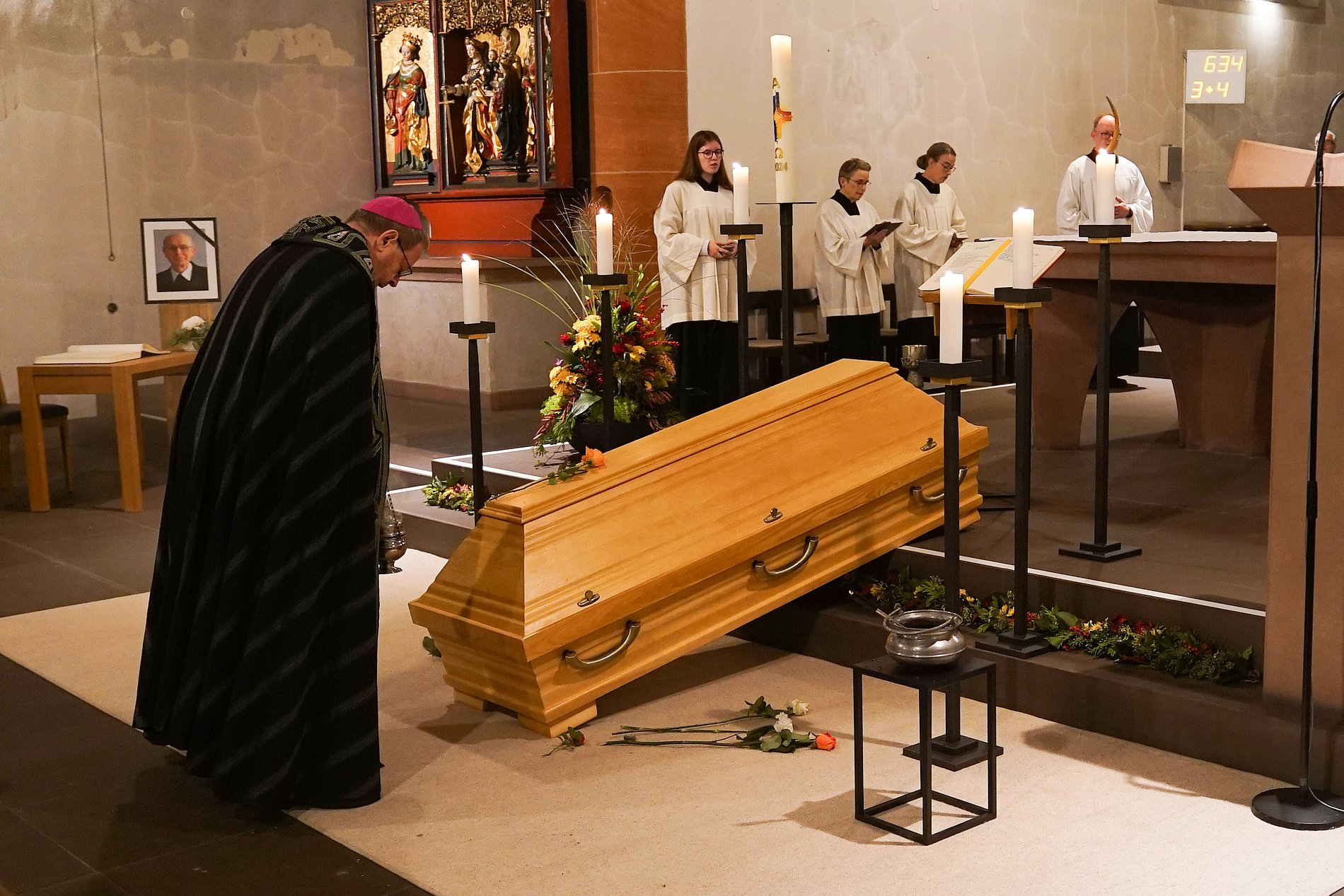 Am Dienstag, 5. November, wird der Sarg in den Limburger Dom überführt, wo ab 11 Uhr bis zum Beginn des Requiems um 14 Uhr die Möglichkeit zum stillen Abschied besteht. Das Pontifikalrequiem und die Beisetzung werden im Hohen Dom zu Limburg gefeiert. Während des Gottesdienstes wird der Verstorbene in der Bischofsgruft des Doms beigesetzt.